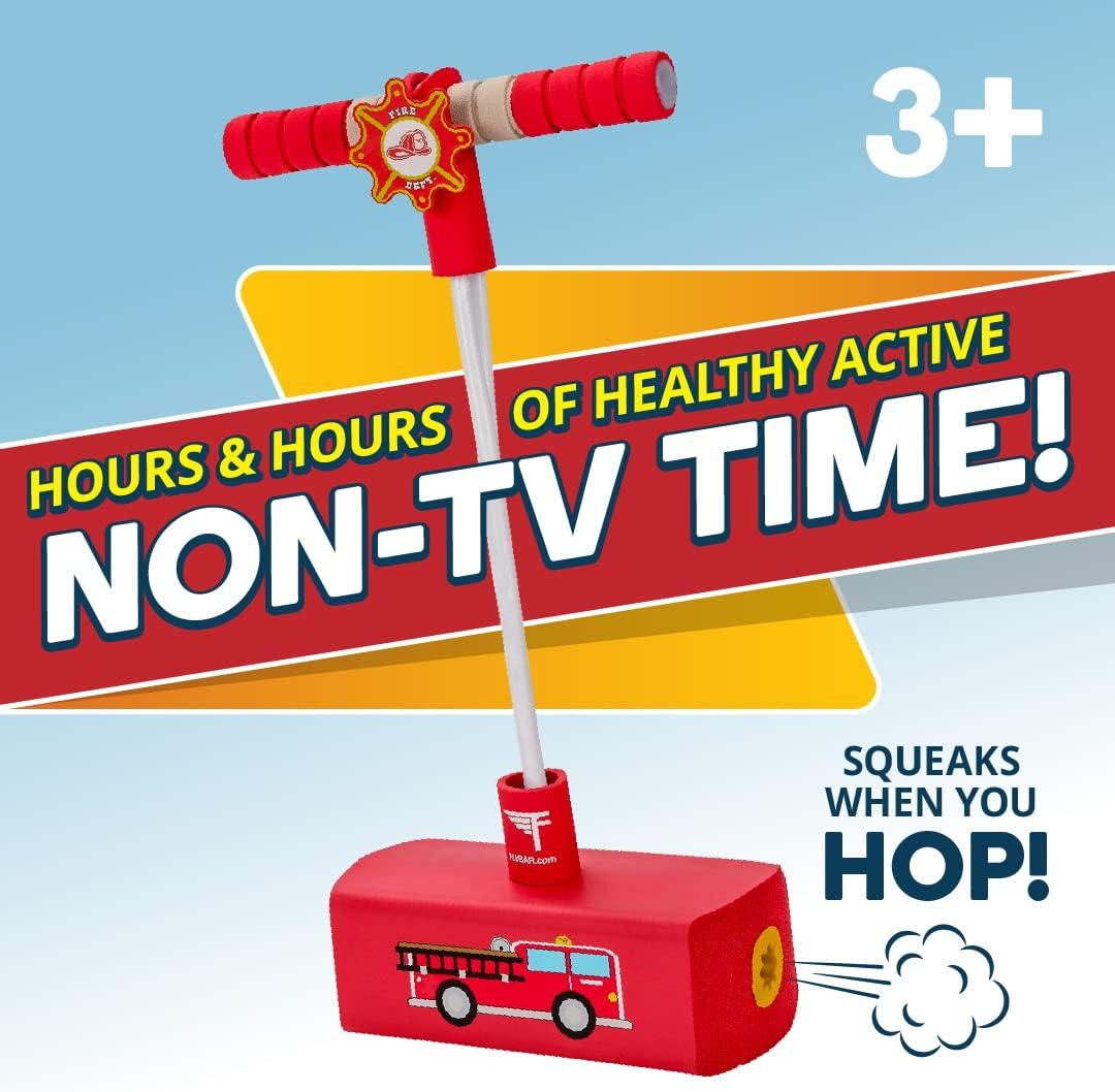 Give your child the gift of imagination with Flybar Pogo Hopper Pretenders set! The pretend play costume and the pogo hopper’s realistic siren sounds and emergency flashing lights in each set provides an active role play experience for toddlers and kids. Included with each Pogo Hopper Pretenders set is a specially designed Flybar foam pogo stick that goes with the role play costume and provides hours of healthy, active fun. Crafted from durable foam, this is the ideal first pogo stick for kids. The Flybar Pogo Hopper Pretenders set encourages play powered by imagination and supports screen-free fun both indoors and outdoors that keeps your child active and burning off extra energy during pretend play adventures.CREATIVE EXERCISE: The pogo hopper will keep your child active and burning off extra energy. SCREEN-FREE FUN: Pogo Hopper Pretenders encourages screen-free fun both indoors and outdoors. MY FIRST POGO: Each set includes a Flybar foam pogo stick that pairs with the role play costume. POLICE AND FIRE PRETEND: The pretend play costume and the pogo hopper’s lights and sounds create a complete role play experience. ACTIVE ROLE PLAY: The Pogo Hopper Pretenders provides a total role-playing experience for toddlers and kids.Manufacturer: Flybar. Department: unisex-teen. Release date: November 9, 2020. Customer Reviews: 4.1 out of 5 stars81 ratings4.1 out of 5 stars. Best Sellers Rank: #141,738 in Toys & Games. Batteries: 7 LR44 batteries required. Manufacturer recommended age: 3 years and up. Item model number: Fire. : B0896ZM7WS. Item Weight: 1.28 pounds. Product Dimensions: 6 x 5.5 x 12 inches.