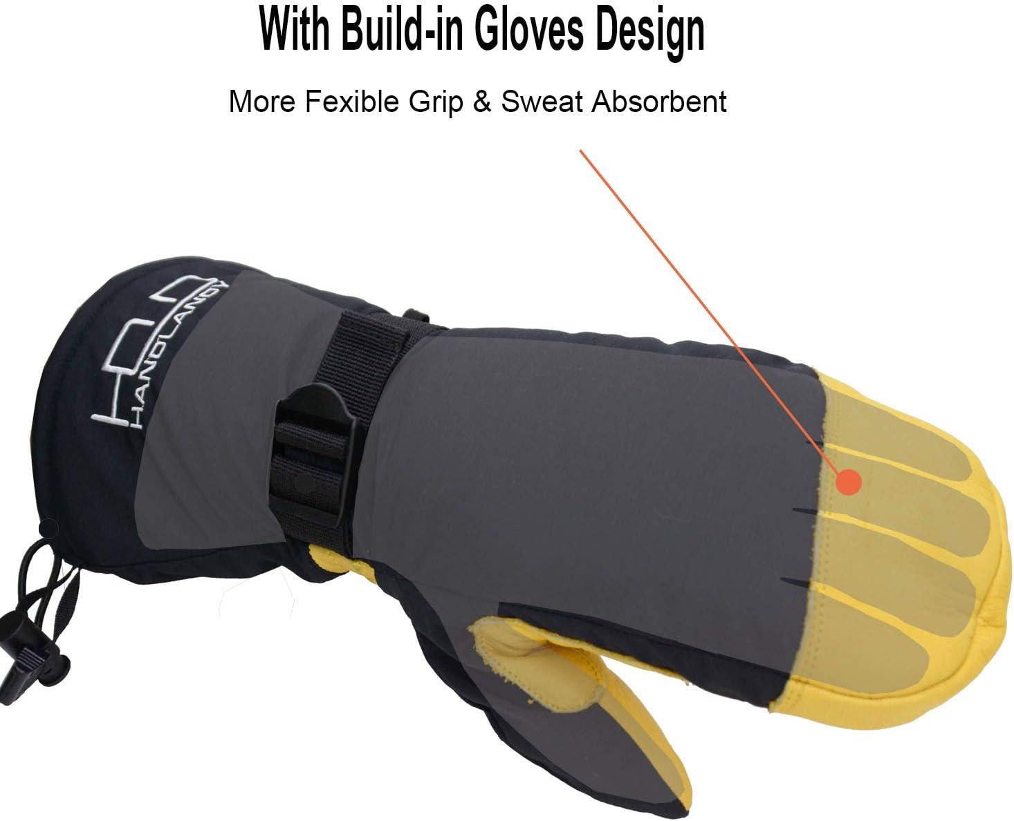 Great Gifts – Snug and Warm Winter Ski Gloves: The thinsulate split-finger liner is very soft and comfortable for skin touch, and it’s snug and warm. It will be a great christmas gift for your familes, friends and workmates to play together in winter sports!. Custom Fit – Adjustable Cuff Strap and Drawstring Bottom : The adjustable buckle wrist strap and the drawstring closure is effectively keep the gloves tight and prevents against cold air outside. Genuine Leather Palm – Wear Resistance: Full grain cowhide palm and reinforced saddle ensures strong and flexiable hand grip in skis or daily use. Great grip and durable to use in winter sports. Water Repellent & Windproof – Keeps Your Hand Warm and Dry : The water repellent nylon fabiric back prevents cold wind and snows outside in riding and skiing. The insert waterproof layer provides entirely guards to keep hands dry in long time snowsports at outdoors. Multi-Layer Thermal Design -3M Thinsulate Insulation Combine with Warm Cotton : The gloves are insulated with 100 grams 3m thinsulate and 350 grams warm cotton. It is thick enough to keep hands warmth in cold chilly weather in skiing, snowboarding, winter riding, hiking and other snowsports etc.Closure Type: Buckle, Drawstring. Item Weight: 120 Grams. Hand Orientation: Ambidextrous. Special Feature: Adjustable. Color: Yellow Mitten. Age Range (Description): Adult; Teen. Sport Type: Skiing. Size: Medium. Material: Polyester, Nylon, Leather, Cotton, Thermoplastic Polyurethane. Brand: HANDLANDY. Date First Available: October 15, 2017. Best Sellers Rank: #260,506 in Clothing, Shoes & Jewelry. Customer Reviews: 4.5 out of 5 stars450 ratings4.5 out of 5 stars. : B076GX2DY6. Part Number: ?43234-2141. Manufacturer: ?HANDLANDY. Suggested Users: ?Mens womens, Mens. Brand Name: ?HANDLANDY. Package Weight: ?0.2 Kilograms. Item Package Dimensions L x W x H: ?12.7 x 5.4 x 2.4 inches. Style: ?Riding,Thermal. Closure Type: ?Buckle, Drawstring. Item Weight: ?120 Grams. Hand Orientation: ?Ambidextrous. Special Feature: ?Adjustable. Color: ?Yellow Mitten. Age Range (Description): ?Adult; Teen. Sport Type: ?Skiing. Size: ?Medium. Material: ?Polyester, Nylon, Leather, Cotton, Thermoplastic Polyurethane. Brand: ?HANDLANDY.