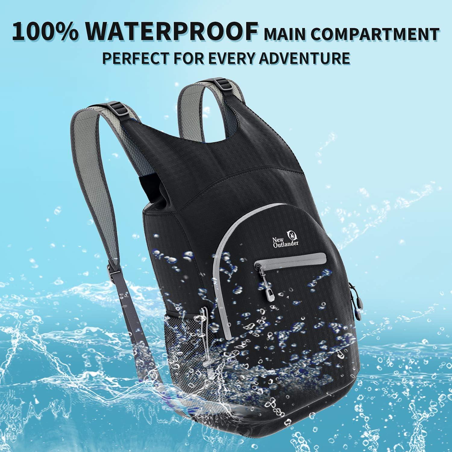 100% WATERPROOF and DURABLE. Waterproof main compartment with roll top closure and sealed seams keep your gear dry in the worst conditions. This Outlander Backpack is made from highly rip and waterproof nylon fabric that provides strength and long-lasting performance with minimal weight. Stress points are reinforced with bar tacking for increased longevity. Durable 2-way Abrasion Resistant SBS Metal Zipper across the backpack.NEW VERSION Includes a carabiner clip so you attach things or clip it to things.Ultra-light. Ultra-durable. Ultra-awesome. The backpack is perfect for day-to-day use or occasional travel, and great gift for everyone. MULTIPLE COMPARTMENTS. Features a classic shape with several pockets for storage and organization. This backpack has a roomy main waterproof compartment, two front zipper pockets to hold small accessories, one internal zippered security pocket for valuable items and two side pockets for water bottles or umbrellas. LIGHTWEIGHT(0.42 Pounds) and ROOMY(25 Liters). A true space saver. Stuff the bag into its own pocket for storage and unzip it when you reach your destination. Avoid overweight baggage charges by simply unfolding it from your luggage and using it as a carry on for your excess baggage. COMPACT. Folds into zippered inner pocket to fit anywhere. Unfolds from pocket to backpack. A must-have on any trip. 100% WATERPROOF and DURABLE. Waterproof main compartment with roll top closure and sealed seams keep your gear dry in the worst conditions. This Outlander Backpack is made from highly rip and waterproof nylon fabric that provides strength and long-lasting performance with minimal weight. Stress points are reinforced with bar tacking for increased longevity. Durable 2-way Abrasion Resistant SBS Metal Zipper across the backpack.Date First Available: August 26, 2012. Best Sellers Rank: #8,955 in Sports & Outdoors. Customer Reviews: 4.3 out of 5 stars821 ratings4.3 out of 5 stars. : B07DR88265. Size: ?25L. Outer Material: ?Nylon. Style: ?Daypack Backpacks. Part Number: ?wp-b. Manufacturer: ?Outlander. Suggested Users: ?unisex-adult. Material: ?Nylon. Color: ?Black. Brand Name: ?Outlander. Item Weight: ?0.42 Pounds. Package Weight: ?0.24 Kilograms. Item Package Dimensions L x W x H: ?7.28 x 6.54 x 2.83 inches.