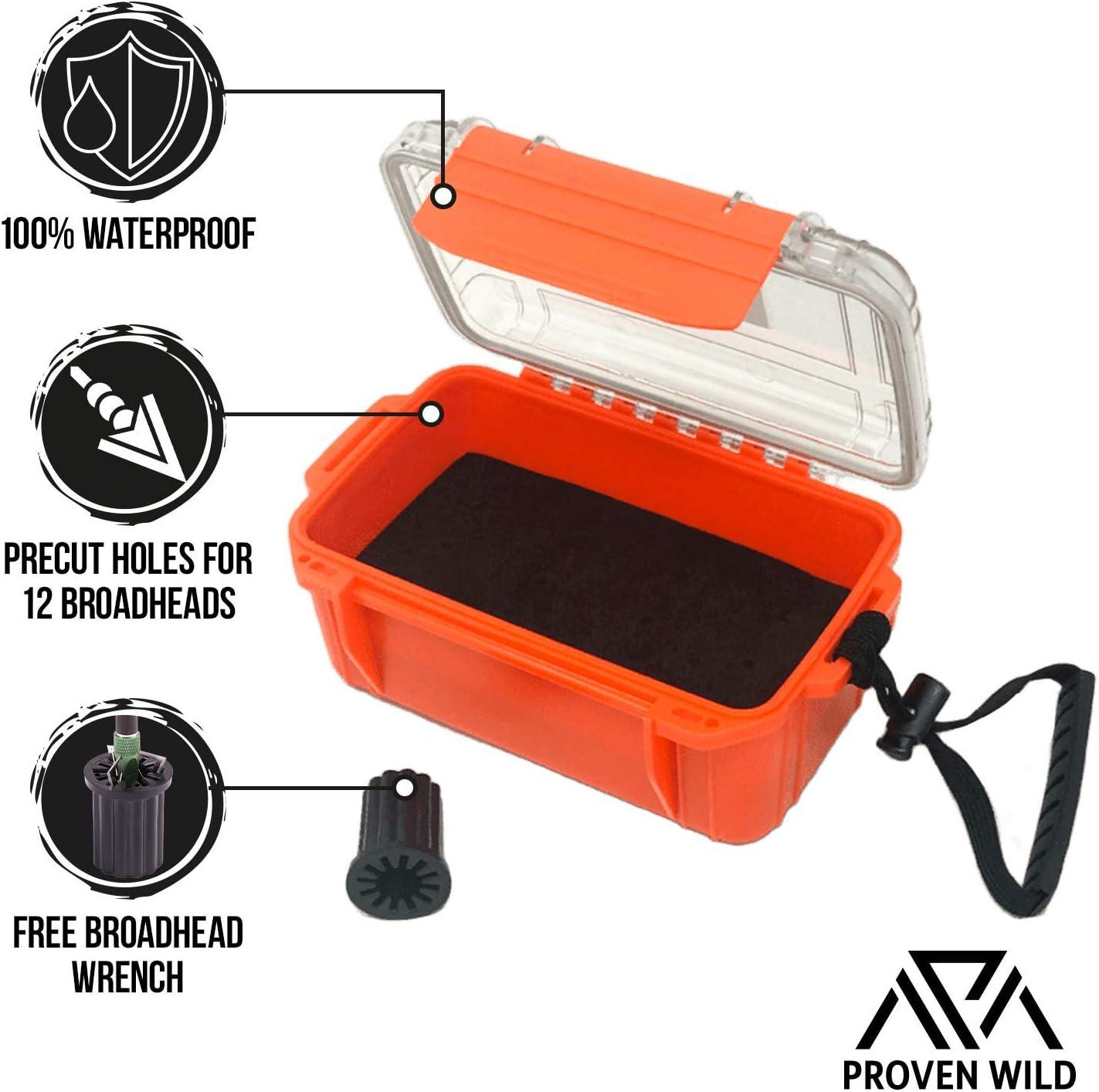 FREE BROADHEAD WRENCH: The box comes with a free broadhead wrench. Use this accessory to safely and easily remove broadheads from arrows, then neatly place the parts into their respective broadhead and arrow storage. GREAT GIFT FOR AN ARCHERY HUNTER: Sealed design that keeps water or dust from going into the case, making for an ideal gift for anyone who’s into hunting and caring for their archery hunting accessories. When used with a small travel padlock, it can be secured for safety to keep broad heads out of reach of children. SECURE BROADHEAD CASE HOLDER: We designed this broadhead holder to minimize the risk of loss, injury, or damage. Keep your broadheads organized in a broadhead holder, so you can better account for your broadhead collection. GREAT OFF-SEASON BROADHEAD STORAGE: This broadhead box features a black foam insert with 12 pre cut holes for individual broad head storage. Broad heads can be stored upright or upside down, keeping your archery accessories from shaking loose. LARGE ENOUGH TO FIT MOST BROADHEAD SIZES: Proven Wild is proud to offer our broadhead case. This case will fit 12 MECHANICAL, FIXED, or TRADITIONAL Broadheads up to 3 in-long. It fits most brand-name broadheads, including Muzzy, NAP, Carbon Express, Montec, Rage, Toxic, Dead Ringer, and more.Closure Type: Pull On. Pattern: Solid. Color: Orange. Brand: Proven Wild. Date First Available: August 18, 2020. Best Sellers Rank: #255,766 in Sports & Outdoors. Customer Reviews: 4.7 out of 5 stars105 ratings4.7 out of 5 stars. : B08G4FKXJR. Size: ?One Size. Manufacturer: ?Proven Wild. Color: ?Orange. Brand Name: ?Proven Wild. Package Weight: ?0.37 Kilograms. Item Package Dimensions L x W x H: ?10.71 x 5.71 x 4.53 inches.