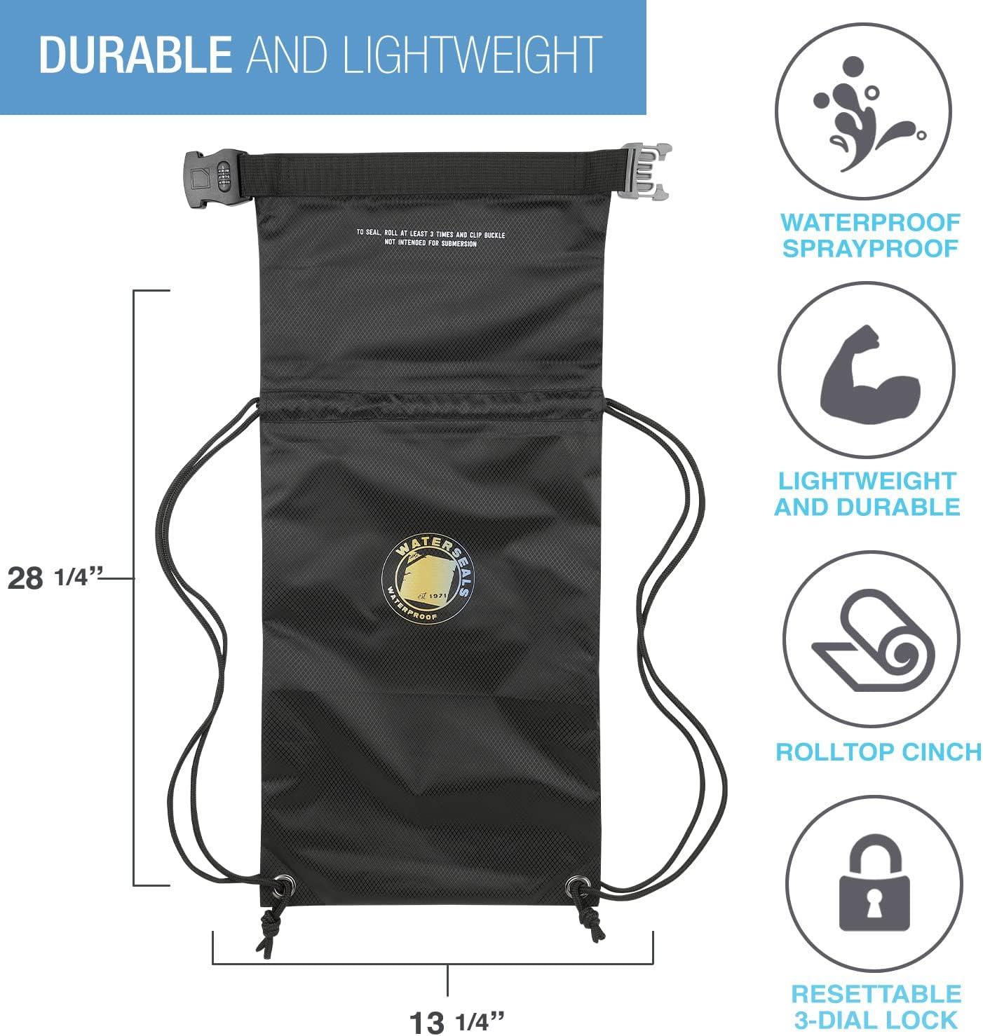 The take-anywhere, stay-anywhere bag. Simple yet effective idea: put a combination lock on a bag! Leave your phone, tablet and keys safely secured onto a chair, fence, post, etc. Now make it even better by making it waterproof. Perfect for camping, pool, beach, part, skiing, and so much more. The waterseal collection protects electronics, gear, and accessories from water and debris, which makes it perfect for canoeing, kayaking, snorkeling, and otther activities on the water. It’s also great at pools, waterparks, beaches, campgrounds, on cruises, or anywhere belongings need to stay dry and protected. Please see video for lock set/reset instructions.LEWIS N. CLARK has been a leader in the Travel & Outdoor Gear for over 30 years. We are passionate about travel and exploring the wonder of the world around us, and our designs focus on making any trip more organized, secure, comfortable, and convenient. MAXIMUM STORAGE: This bag was designed with ample space to fit all your belongings, while still continuing to be lightweight. INTUITIVE FEATURES: Our waterproof drawstring bag was created for your ease. When packing it up, simply roll the top three times, clip to close, and set the lock. Use the clip for attaching it to a chair, poll, or fence. FULLY WATERPROOF: This durable cinch bag is a travel essential that not only secures your valuables, but keeps them dry as well. Take this backpack to the beach, on a cruise, boating, camping, or even use it as a swim bag by the pool. KEEP YOUR VALUABLES SAFE: This drawstring bag is fashioned with Secura lock technology keeping your belongings safe with a 3-digit resettable combination. Protect valuables such as your phone, wallet, tablet, laptop, keys, and much more.Best Sellers Rank: #35,199 in Clothing, Shoes & Jewelry. Customer Reviews: 4.2 out of 5 stars655 ratings4.2 out of 5 stars. Item model number: 94703. : B07PKV1Q5B. Manufacturer: Lewis N. Clark. Department: unisex-adult. Item Weight: 9.8 ounces. Product Dimensions: 0.5 x 13 x 28 inches.