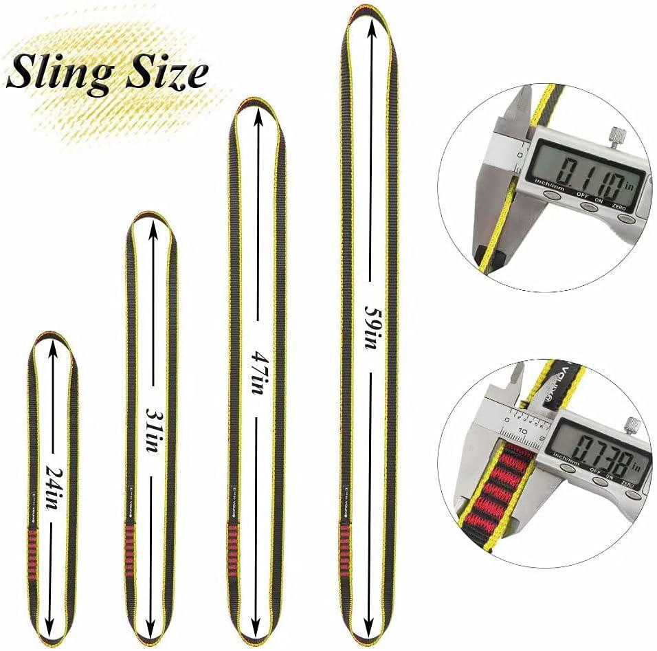 What You Get: 3 pcs nylon slings. 30 days no reason to return, 90-days money back policy for quality-related issues give you 100% satisfaction,please buy without worry.Equipment for participating in outdoor activities: When you need some recreation outdoors, all you have to do is run the sling through a plank with holes in it and you get a swing. It’s perfect for hanging hammocks, and It can also be used as a simple harness, both as a chest harness and as a waist harness. It’s just that it’s so thin that it might not be very comfortable.The practical functions are varied: The nylon sling runner comes in a variety of sizes, can suitable for different use scenarios. The shorter ones fit perfectly for abseiling prusik cord, foot loop on ascender. Long ones is great for positioning lanyard extension, building top rope anchors or temporary anchors and also good for rigging, speed lining, installing friction rings, hauling items, etc.Small and portable but powerful: At just 16mm or 0.63 inches wide, You can easily carry the sling in your pocket, thin but strong enough and really durable. Perfect for arborist working while climbing trees. Tying an anchor to a tree does less damage to the tree than any metal anchor. And also very convenient as a rescue rope, in the physical fatigue waiting for rescue.High-quality materials and exquisite craftsmanship:Xinda clmbing sling runner made of high density nylon webbing, sewn in bar-tack and use solid glue to reinforce. The sling runner through CE and UIAA certified can withstand the tension of 22kN, about 4840lb. It’s no exaggeration to say that it could lift a family car if who had enough strength.Date First Available: May 29, 2019. Best Sellers Rank: #358,811 in Sports & Outdoors. Customer Reviews: 4.7 out of 5 stars111 ratings4.7 out of 5 stars. : B07SC8VRPT. Size: ?47inch/120cm 3pcs. Part Number: ?XD9314yellow1203. Manufacturer: ?XINDA. Material: ?Nylon. Color: ?Yellow. Country of Origin: ?China. Brand Name: ?XINDA. Package Weight: ?0.32 Kilograms. Item Package Dimensions L x W x H: ?8.6 x 7 x 1.1 inches.
